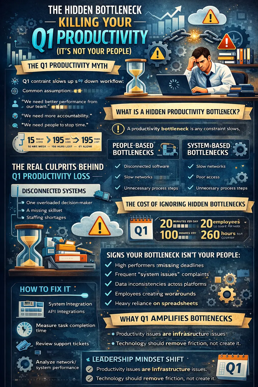 The real culprit behind many Q1 productivity issues isn’t your team. It’s the hidden bottleneck in productivity quietly embedded within your systems, workflows, and technology infrastructure.